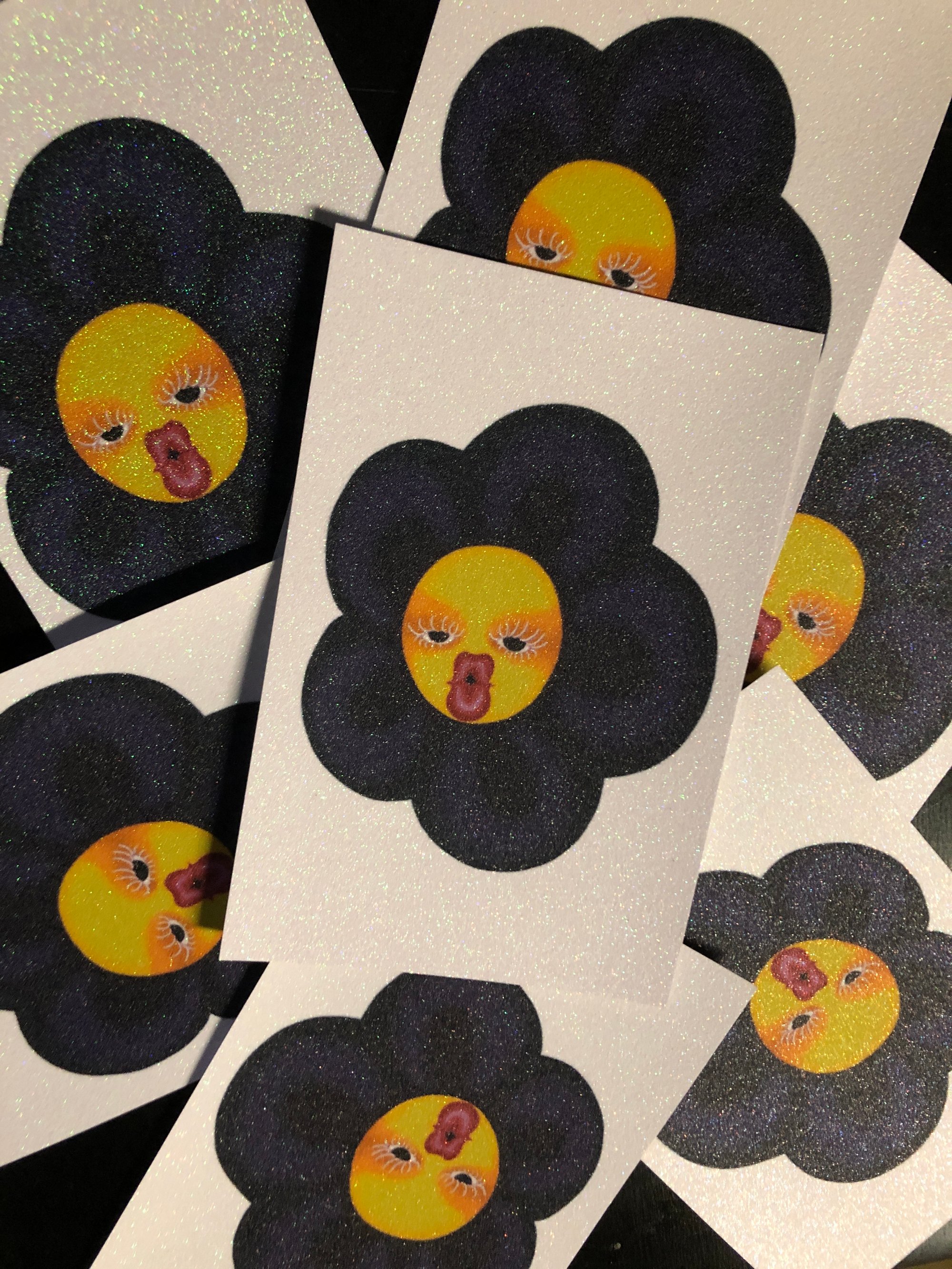 Print of ‘Fishy Face Flower’ on 4”x 6” glitter paper