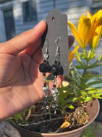 Goth Tears earrings dangle from your ears holding a faceted black glass, and skulls and sun sparkling bead
