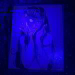 Glitter details, UV reactive. Gloss varnished, signed and dated.