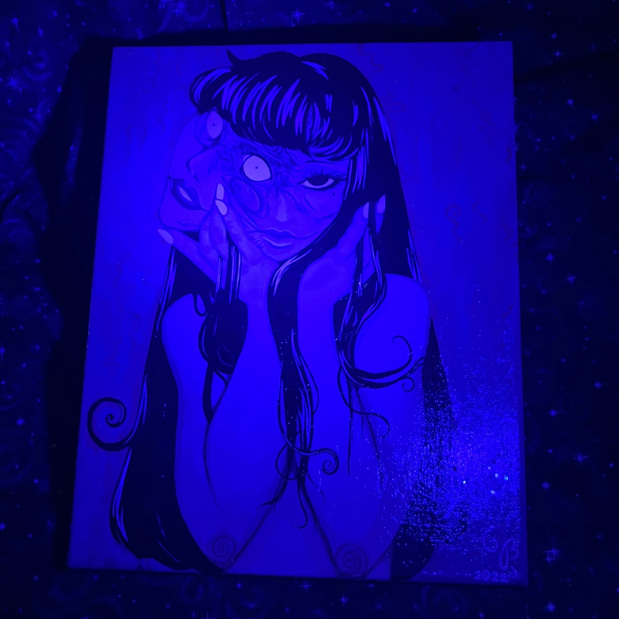 Such a bewitching girl, that Tomie is.. something about her makes me want to slice her into pieces.. a painting of Tomie by Junji Ito, one of my favorite mangas
